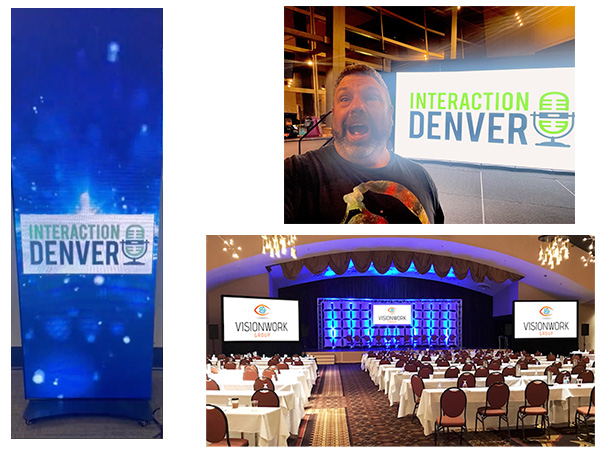 Denver Digital Signage & Display Solutions. Our 7 foot high by 2 foot wide LED Video Poster Panels. These panels can display your company brand to your desired markets and attendees at your convention, trade show floor, meeting, or special event.
